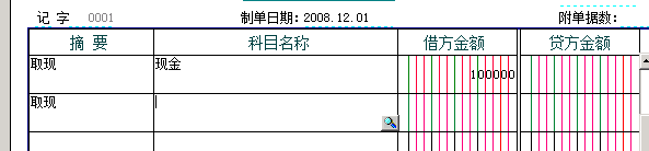 这样第一分录输入完成,我们可以在键盘上直接敲回车跳到第二分录,摘要也会自动带入进去