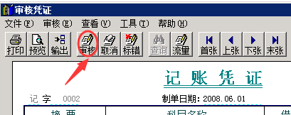 一个操作员录入了凭证之后,另一个操作员就可以登录进去进行审核了(必须换一个操作员,自己无法审核自己的凭证),如图: