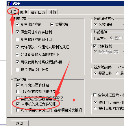 以上说的是不审核的凭证可以记账的设置,下面就说说记账。