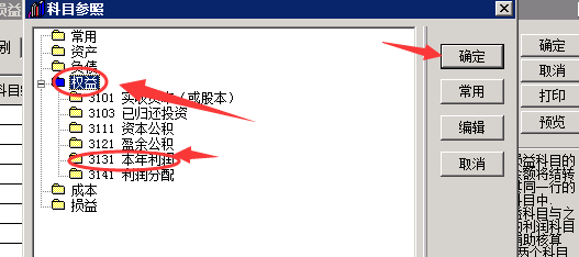 再次点箭头处的放大镜选择“权益类”里面的“本年利润科目”