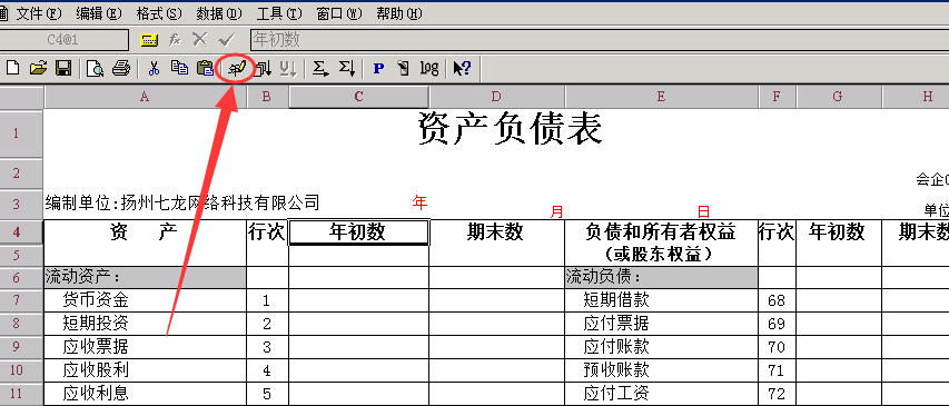 每个月所有凭证全部记账之后,就可以出资产负债表和利润表了,第一次点开资产负债表是空的,需要自己建立模板