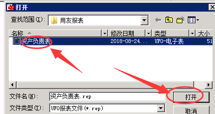 以后打开报表直接选择该位置的资产负债表打开即可,如下图: