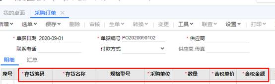 6、再来打开采购订单,就可以看到品牌字段了,如图下: