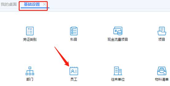 登录畅捷通T+标准版,鼠标点击基础设置中的“员工”图标,如图下: