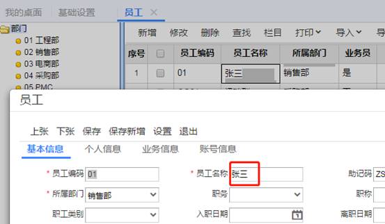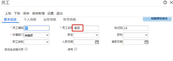 打开后双击员工张三,把张三改成李四并保存,如图下: