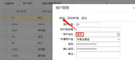 双击张三对应的用户账号,然后把用户姓名改成李四即可,如图下: