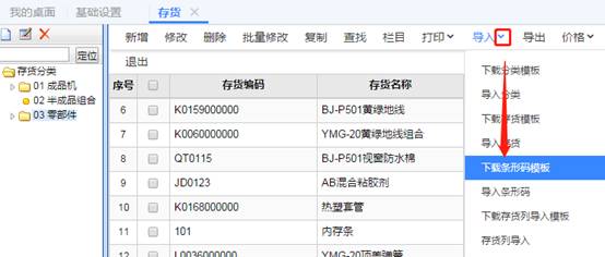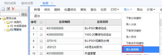 4、条形码模板录入完成后,再点击导入“导入条形码”即可,如图下: