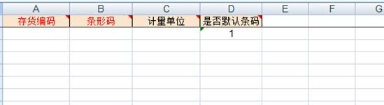 3、打开条形码模板,录入存货编码与条形码并保存,红色字体为必录项,如图下: