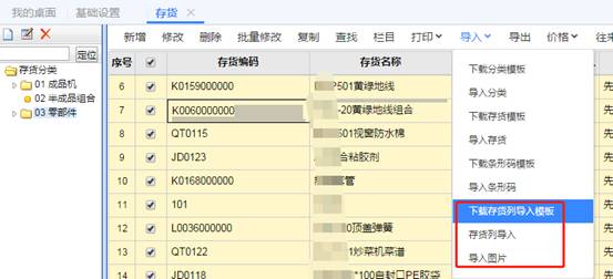 5、补充:如果还要补录存货对应的品牌、描述、最高库存、最低库存等信息,也可以下载对应的模板,整理好后导入即可,如图下: