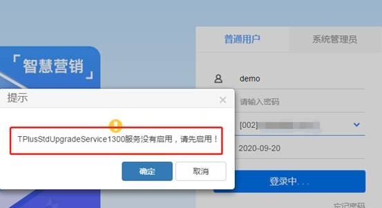 问:如图下打开畅捷通T+标准版,提示:TPlusStdUpgradeService服务没有启用,请先启用!