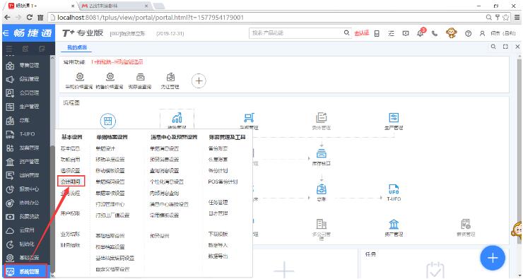 2、点“系统管理”-“基本设置”-“会计期间”;