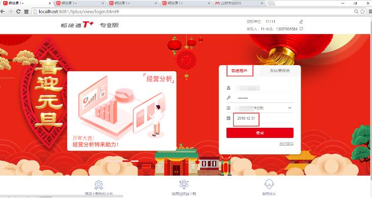 1、以2019年的日期,用账套主管的身份登入T+软件;
