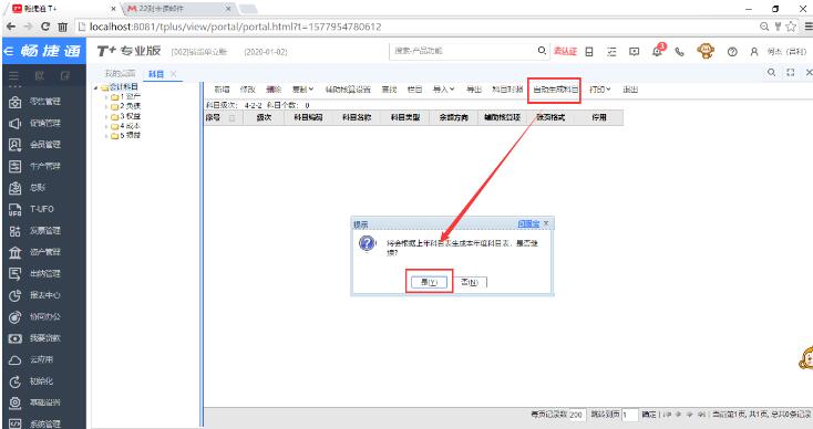 6、如果客户那有财务账,需要做2020年的凭证,则还需要点“基础设置”-“科目”-“自动生成科目”,则会把上年度的科目带到本年度;