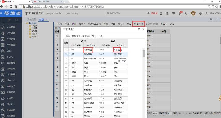 备注:如果上年12月没有结账,建议最好不要增删改科目,否则上年12月财务结账时有些期初可能会带不过来,如果本年度一定要修改科目,则建议改完科目后,在“基础设置”-“科目”-“科目对照”中做好科目对照,再进行上年12月的财务月结操作;