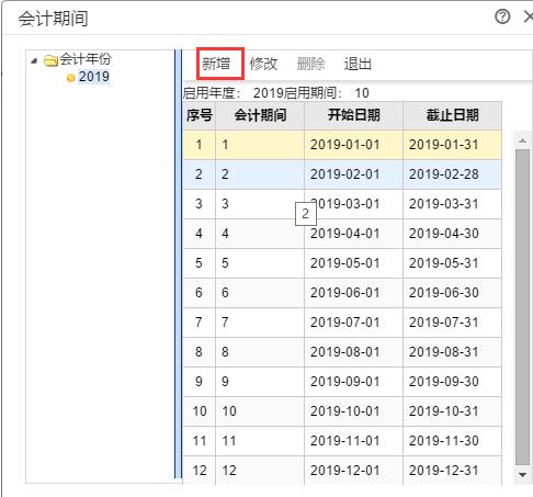 3、在会计期间的界面上,点“新增”按钮;