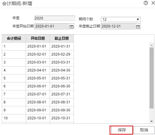 4、期间个数默认是12个,不用修改,直接点下面的“保存”按钮即可;