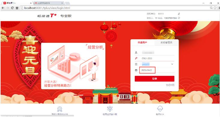 5、以2020年1月1号的日期,用账套主管身份登入软件,则可以继续做业务账了;