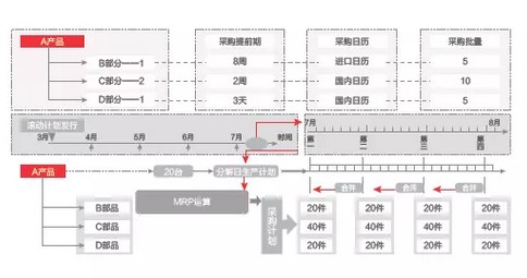 此外,在计划设计时,采购提前期是一个重要的参数,U8支持多套采购日历,BOM当中也考虑这个因素,把进口件的日历和国产件的日历区分考虑设定,确保我们纳期和供应商到货时间以及安排的物流运输能吻合起来。设定完采购批量、提前期,大京机械滚动计划一般是N+5个月,根据MRP进行运转,运转完以后,国内每周每天到货,或者每周哪几天到货,国外就是每个礼拜只有哪一天到货,这就是N+5的生产计划的目的和作用,在U8系统中实现的非常完美。采购恰当数量和品种的零配件,选择恰当到货时间,也及时取得生产所需的各种原材料和零部件,即保证生产平衡进行,又最大限度的节约了企业的生产采购成本。