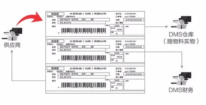 为了实现这个目的,我们导入了供应商协同平台,供应商协同平台基础是条码。刚才提到对供应商发行订单的同时,我们就把相对应的条码发行到供应商平台,供应商随时能看到。我们设计的时候有三张票据现品票、纳品票和售领票