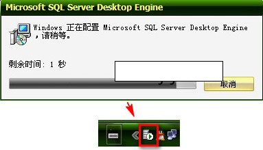 双击MSDE2000处,出现下面这个对话框,这就表示在安装数据库了。