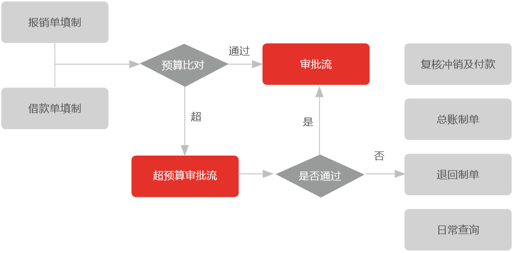 规范了日常费用、差旅、付款、借款核销等十几种业务单据模板和审批流程,提升审批内部效率; 通过网上报销平台与预算 系统的连通,大大增强了预算的控制基线作用,做到费用控制真正有的放矢。