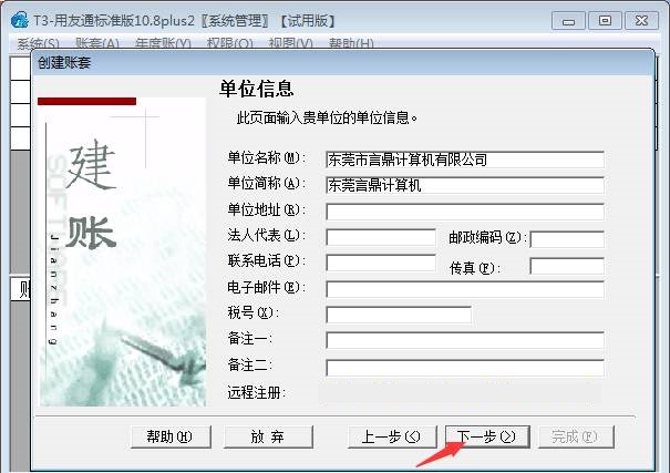 6、设置好基础信息后,点击下一步直到完成建立新账套。