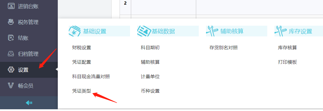(1)凭证类型:在【设置】-【凭证类型】可以根据实际需要选择相应的凭证类型。
