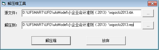 2、源文件选择报表模板的.rbk文件,解压到选择.rep格式的报表文件,点击“解压缩”,提示“解压缩成功”;