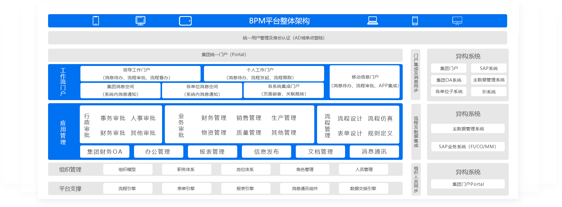 原有各系统的流程和功能被统一到BPM门户里,消灭信息孤岛,通过Portal用户不需登录多个系统就能处理日常事务,通过业务的全流程驱动实现事找人,全面提高员工工作效率和领导管理效能