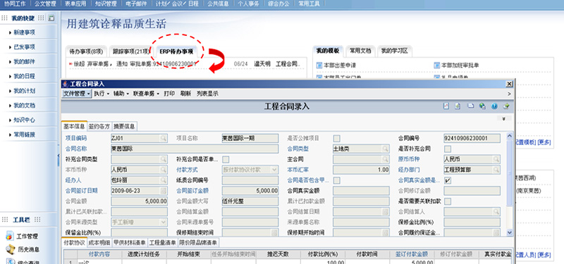 基于工程类成本控制,尤其是轻量级合同管理及相关付款资金计划的执行可以使用协同平台标准流程化解决。