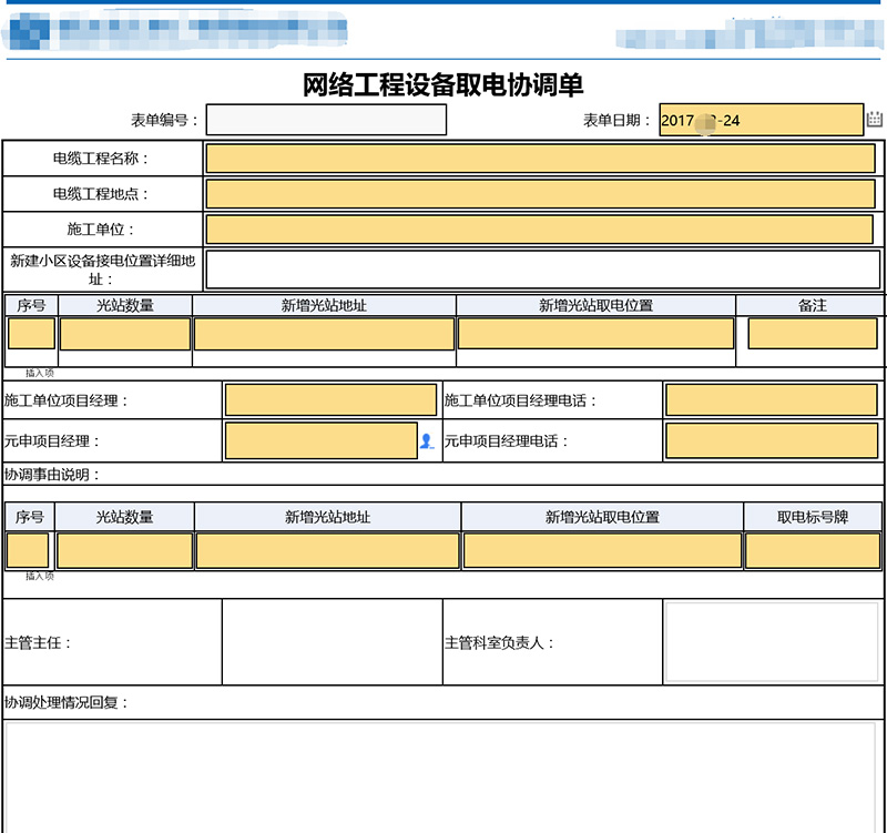 网络工程设备取电协调单