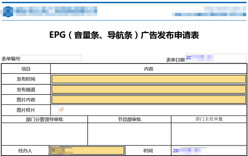 EPG广告发布申请表