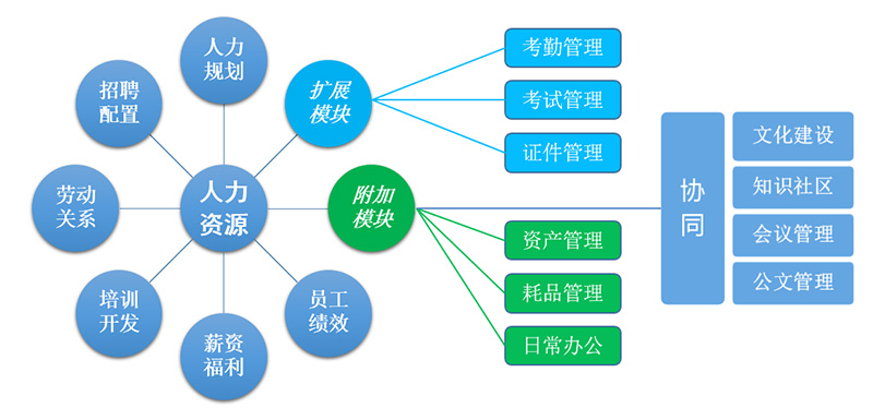 以人力资源管理六个板块的内容为基本模块,以与人力资源管理紧密相关的内容为扩展模块,以服务于人力资源管理的行政管理事务为附加模块。