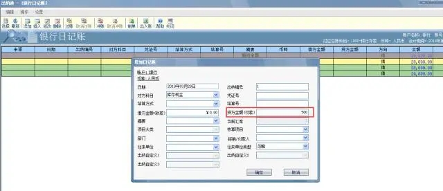 银行账户录入贷方500元,查询现金账户,并没有任何影响