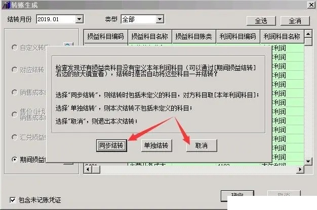 结转的时候系统也会有提示。选择同步结转或取消后重新设置