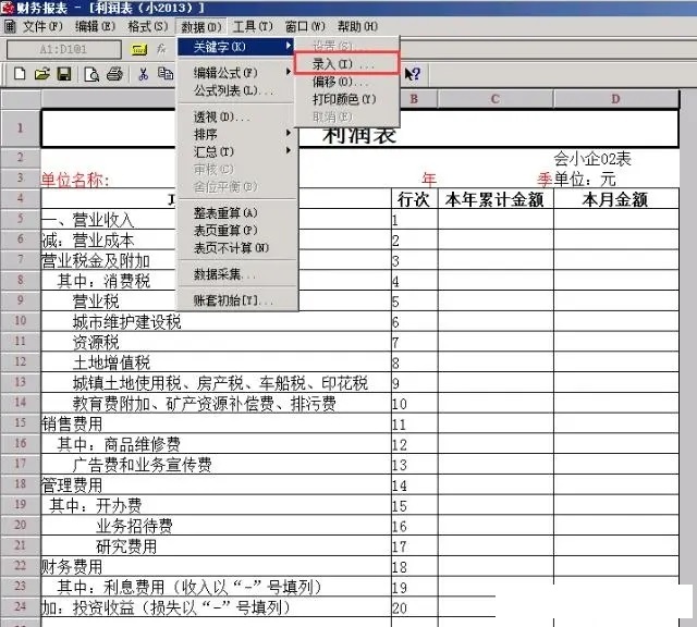 1.打开普通月报模板(以利润表为例)