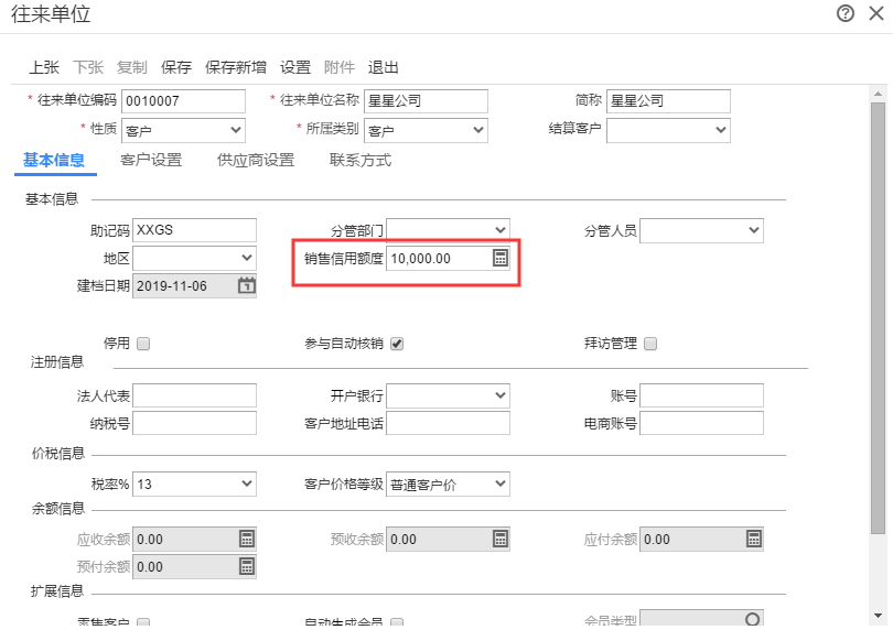 (1)基础设置-往来单位-把客户的信用额度加上;