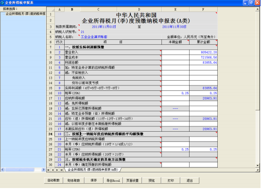 点击【企业所得税预缴纳税申报表】后,进入填写界面
