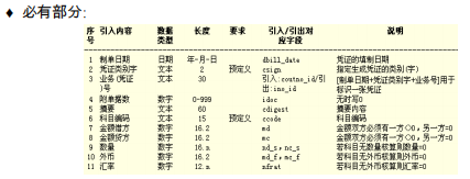 ♦ 引入时由系统自动填写的部分(在总账系统中将凭证按文本格式输出时,也将此部分内容输出到文本文件中):