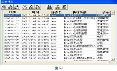 2、 单击【视图】项,系统自动拖出下级菜单,再将鼠标移动到【上机日志】,单击鼠标,系统自动弹出以下界面(如图 5-5):