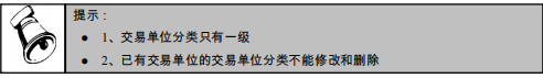 ● 所属分类 指当前设置单位所属的交易单位分类。