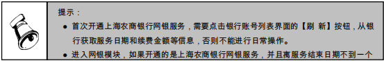 2、银行账号编辑界面,但所属银行为上海农商银行时,点击【续费】按钮,系统弹出续费信息界面