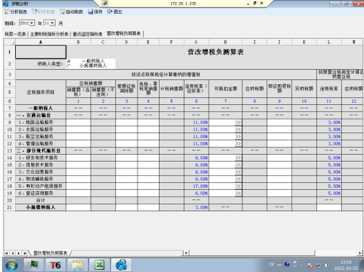 第五步:“点击”营改增分析报告之前要保存数据,并且要补全“预警设置”中的数据。
