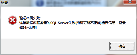配置T6服务的时候提示:验证密码失败:连接数据库服务器的SQL Server失败(密码可能不正确)错误信息:登录超时已过期密码没有错误,也修改过,请问这是什么原因?