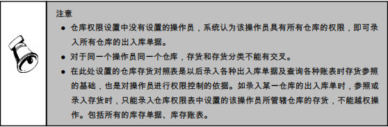 1、在仓库档案界面,用鼠标单击〖权限〗按钮,进入仓库权限设置界面。