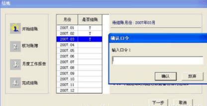 2、 在弹出的窗口中,选择要取消结账的最后一个结账月份,按Ctrl+Shift+F6组合键,再输入帐套主管的口令即可。