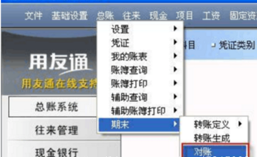 1、 依次点击总账——期末——对账。