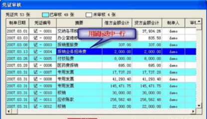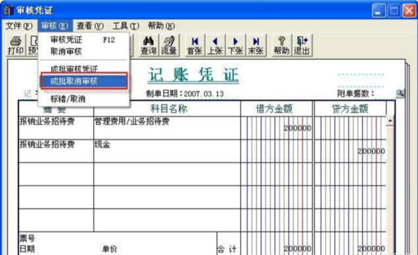 1、 以审核人的身份登陆到用友通软件,点击“审核凭证”打开“凭证审核”窗口,可以选中一个或多个已审核的凭证进行取消审核,如图所示