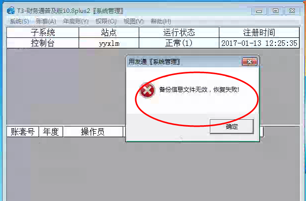 用友T3恢复账套时提示,备份信息文件无效,恢复失败?