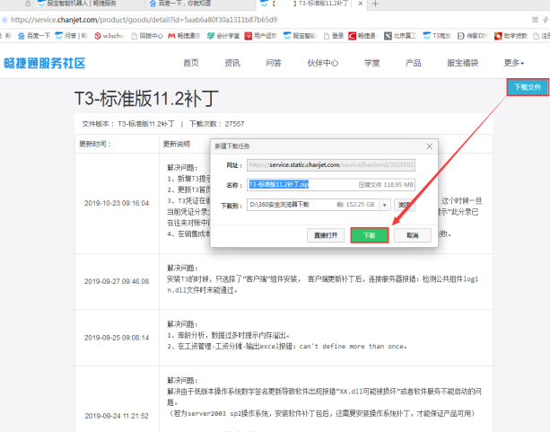 (2) 在产品-产品更新中找到与产品对应的补丁名称,如本例中就是下载“T3 标准版 11.2 补丁包”